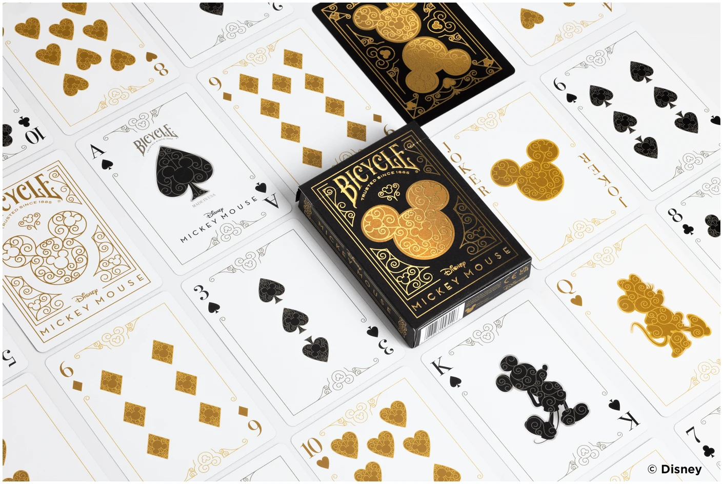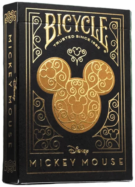 Mickey Mouse es un ícono cultural global y verdaderamente un amigo para todos. Él anima a los fanáticos de todas las edades a abrazar su originalidad y creatividad mientras despierta la felicidad en todo el mundo. Las cartas de juego Bicycle Mickey Black and Gold ejemplifican el lujo y el estilo con delicados elementos de diseño, Mickeys ocultos y papel dorado estampado en caliente en el reverso de cada carta.