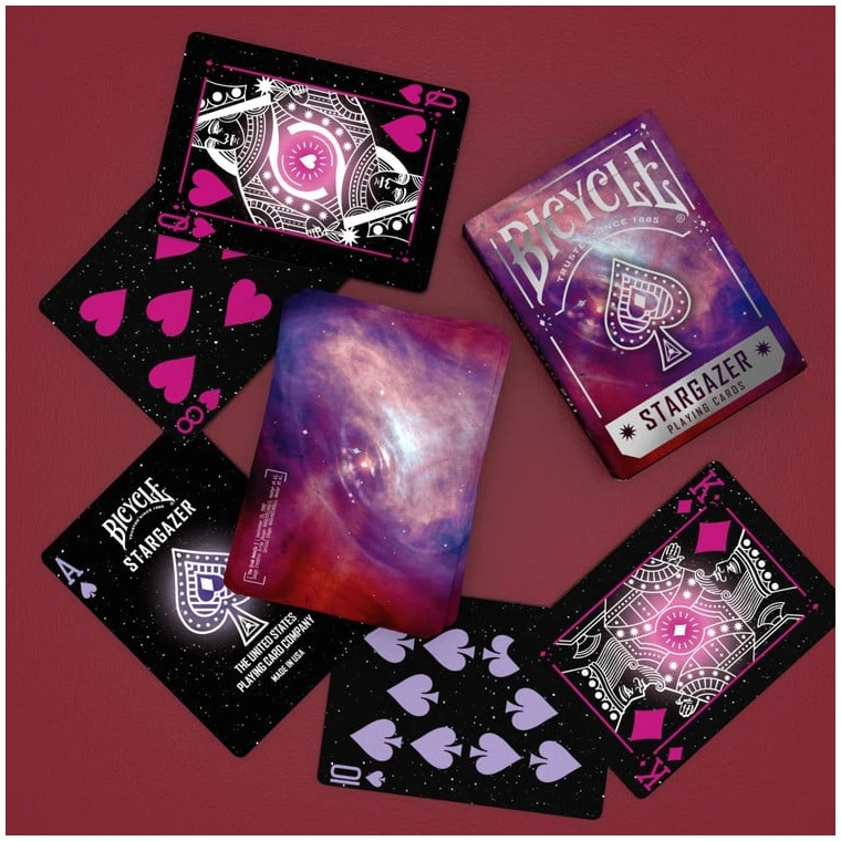 Admira las profundidades escarlata y magenta de la Nebulosa del Cangrejo en el dorso de cada carta, con fotografías tomadas por el Telescopio Hubble el 19 de septiembre de 2002. Con diseños de cartas de la corte inspirados en constelaciones y un estuche con incrustaciones de lámina plateada, te encontrarás con un universo de entretenimiento.