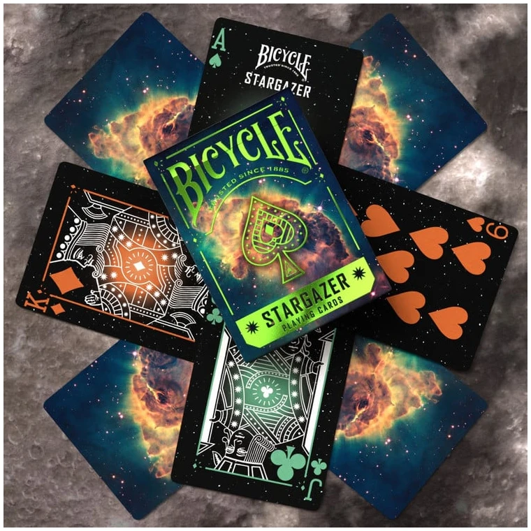 Con los diseños de las cartas de la corte inspirados en constelaciones y un estuche con incrustaciones de lámina verde, te deleitarás con un universo de entretenimiento.