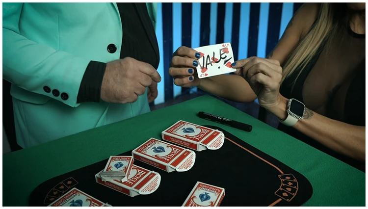 Te presentamos una rutina increíblemente cautivadora de Jorge Luques, ideal para tus espectáculos de salón y de cerca, producida por Gustavo Raley. En esta rutina, un espectador elige una carta libremente y luego la firma. Milagrosamente, la carta firmada aparecerá dentro de una pequeña caja, incluso después de haberla sacado de entre cinco cajas diferentes.