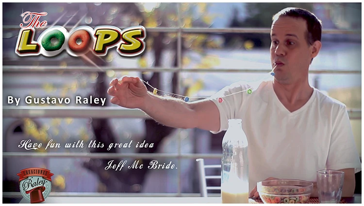 Un clásico de la magia como navajas o agujas enhebradas en la boca era imposible de realizar para niños. Con The Loops , puedes realizar esta rutina de una manera muy divertida.El mago muestra un cereal Fruit Loops. Se pone varios de estos en la boca y se los come.